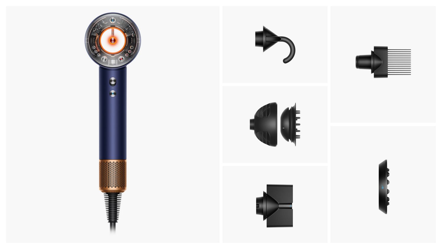 İster şeffaf uç kapağın ardında görünür şekilde olsun, ister kapsül aydınlatmasından yansısın ya da tutma koluna özenle gizlenmiş olsun; bu akıllı saç kurutma makinesi, öncü Dyson teknolojisi ile doludur.